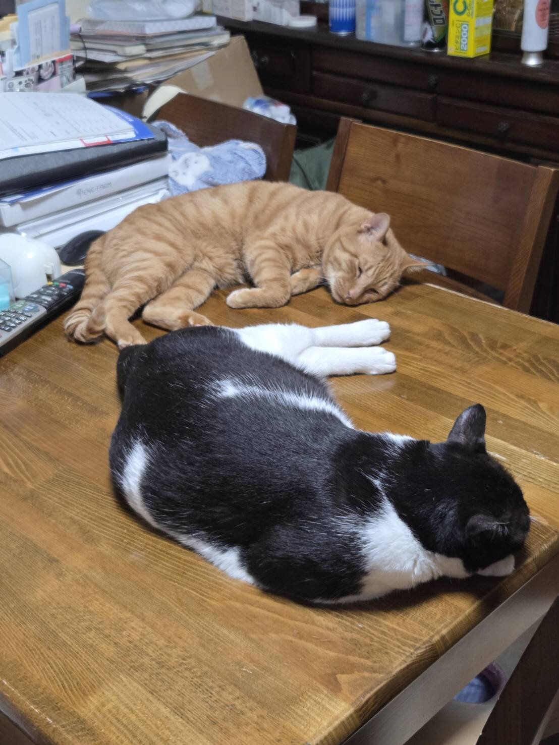 チャロもクロも激暑の夏を耐えて最近は、2匹並んで寝るようになりました。